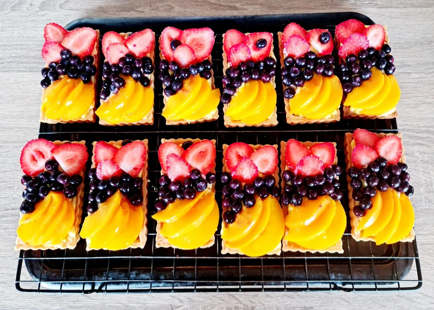 All our pastries are made with care, using quality ingredients and plenty of love. Enjoy our signature almond croissants — a bakery favourite — or treat yourself to one of our fruit tarts. Each tart features a light, crisp base filled with smooth crème pâtissière and topped with a colourful selection of seasonal fruit. Simple, fresh, and delicious!